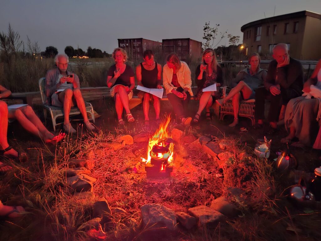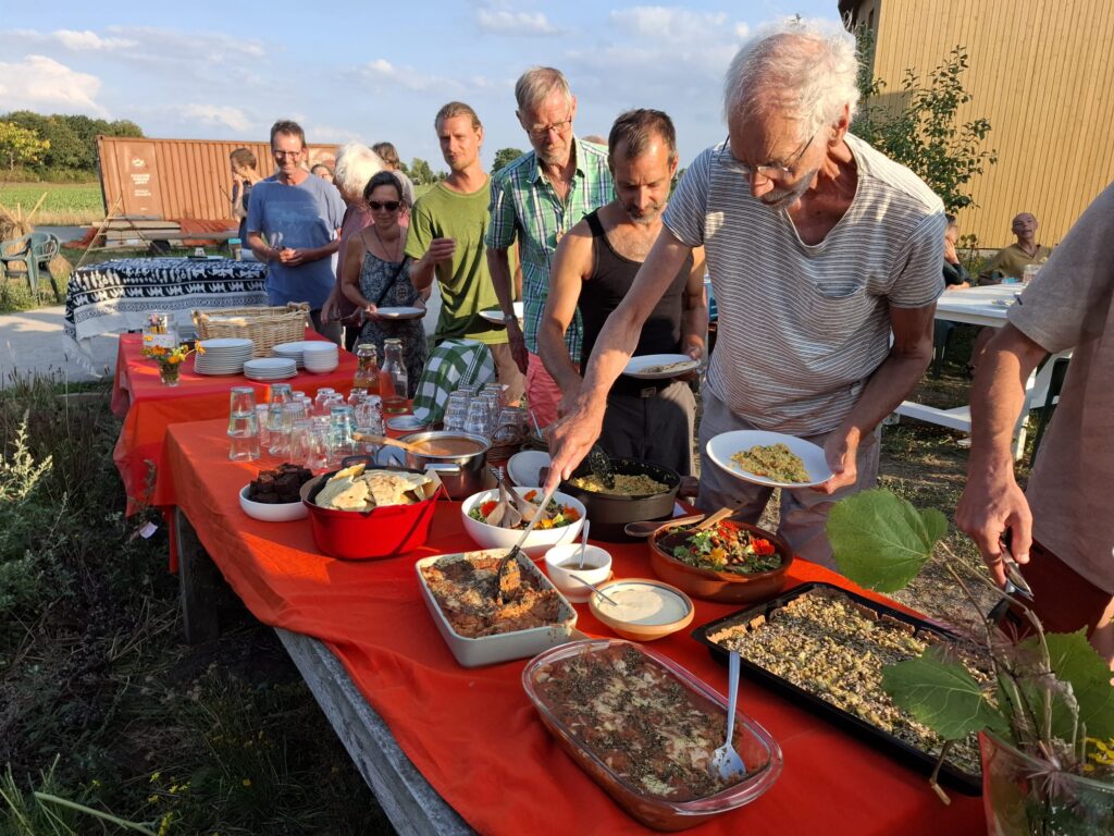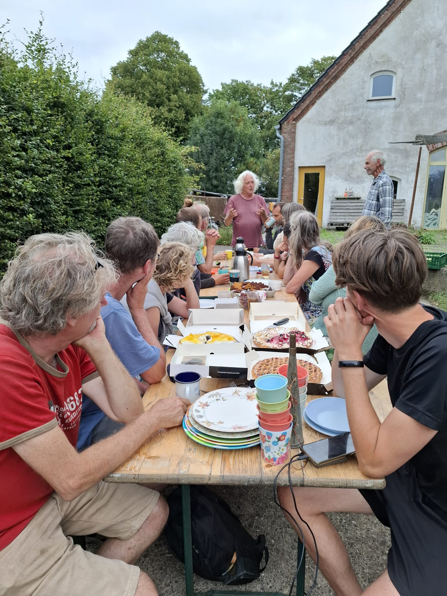 Na een mooie fietstocht kwamen we bij de Vlierhof in Duitsland. Ook weer zo’n prachtige plek met kampeerterrein, mooie moestuin, een idyllisch zwemvijvertje met sauna en een groot veld voor bijeenkomsten en workshops. Daar aten we met zo’n 80 mensen soep uit één grote ketel boven het kampvuur en zong ik ’s avonds mee met een bijzondere zangcirkel. Het fietsen was heerlijk en de tocht blijft me vooral bij door alle ontmoetingen en gesprekken met bevlogen en inspirerende mensen. Zeker voor herhaling vatbaar!